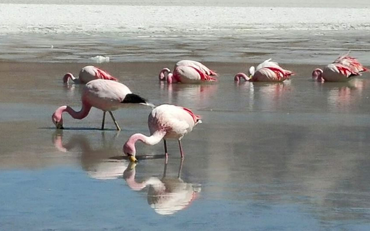 Salar de Uyuni (Potosí) el más grande y misterioso del planeta, con 12.106 kilómetros cuadrados de extensión. Esta concentración de sal está conformado por cerca de 11 capas de sal, cuyo espesor varía entre los dos y diez metros. En el mes de noviembre se convierte en el lugar de cría de tres especies de flamencos. Cactus gigantes de hasta 10 m de altura se hallan en la Isla del Pescado.